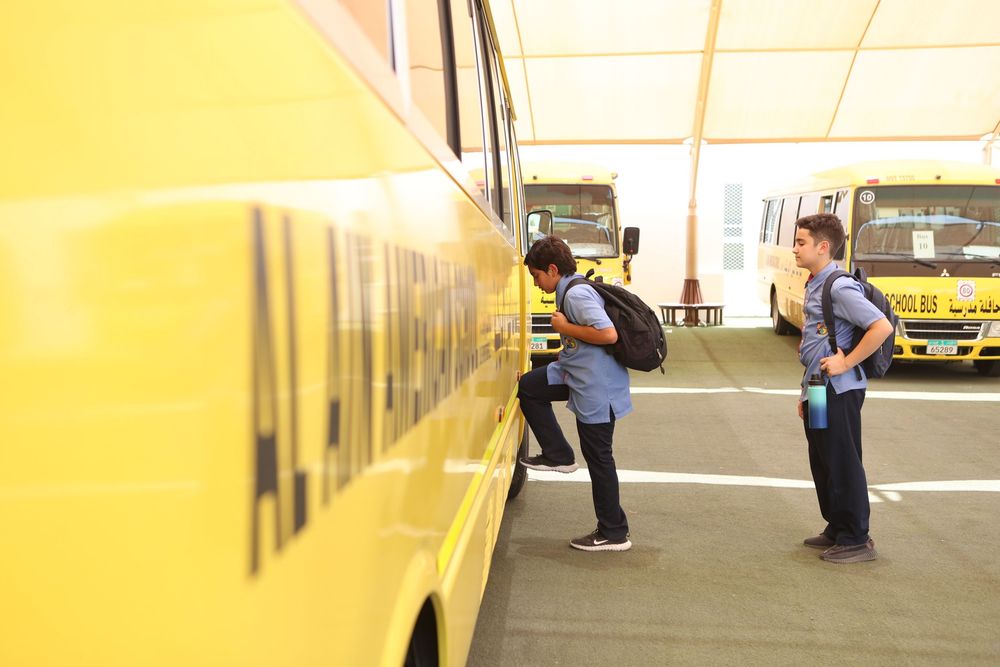 Al Ain American School is in partnership with a well-known transportation company that ensures all buses follow the DOT regulations and all drivers have received a “Good Conduct” certificate and are licensed to drive students.